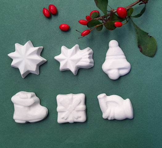 Sada 6 ks sádrových odlitků. Vhodné na domalování vodovými nebo akrylovými barvami.