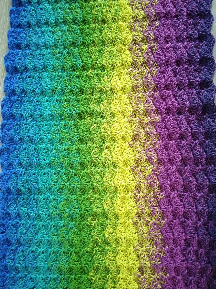 Oživte si podzimní dny s ručně háčkovanou šálou z příze ve složení 50% bavlny a 50 % akrylu.