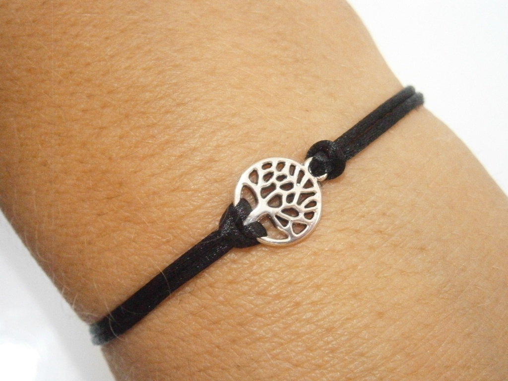 Náramek je vyroben z černé saténové šňůrky a kovového přívěsku - Strom života.