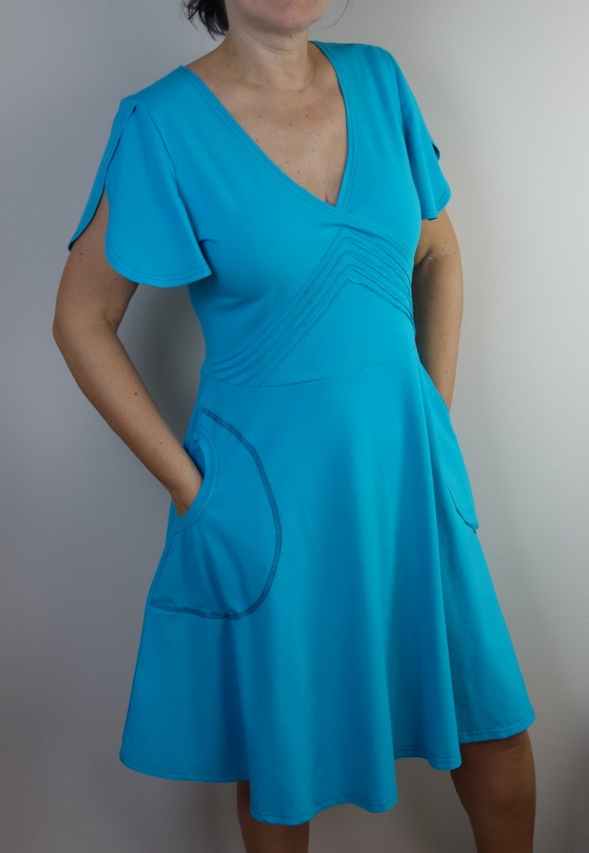 Zamilujte si pohodlí s nádechem originality. Úpletové šaty s jemnou aplikací a praktickými kapsami jsou stvořené pro chvíle, kdy toužíte být sama sebou – v pohodě. Elegantní a neodolatelně ženská. Ideální pro procházky městem i klidné dny plné snění. Sukně do širšího A. Rukávky přeložené jako dva lupínky z květů :)