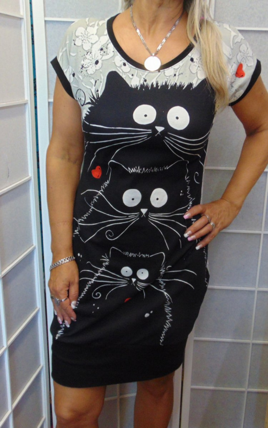 Krátké šaty jsou ušité z příjemného bavlněného úpletu 95% bavlna 5% elastan.