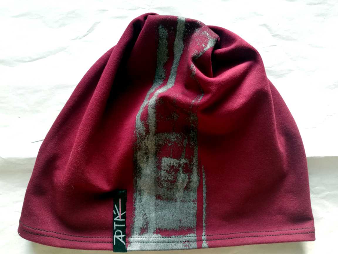 Bavlněná pletenina, teplákovina, ušijeme do 10ti dní (na fotkách barva vínová). Okraje rukávů, výstřihu a spodní lem jsou nezačištěné, přes boky jsou šaty rozšířené a mají 2 kapsy. Na zádech za krkem našité koženkové logo Apták. Tříčtvrteční rukávy doporučujeme dvakrát ohrnout. Pruh je ručně malovaný, bude se vždy lehce lišit.