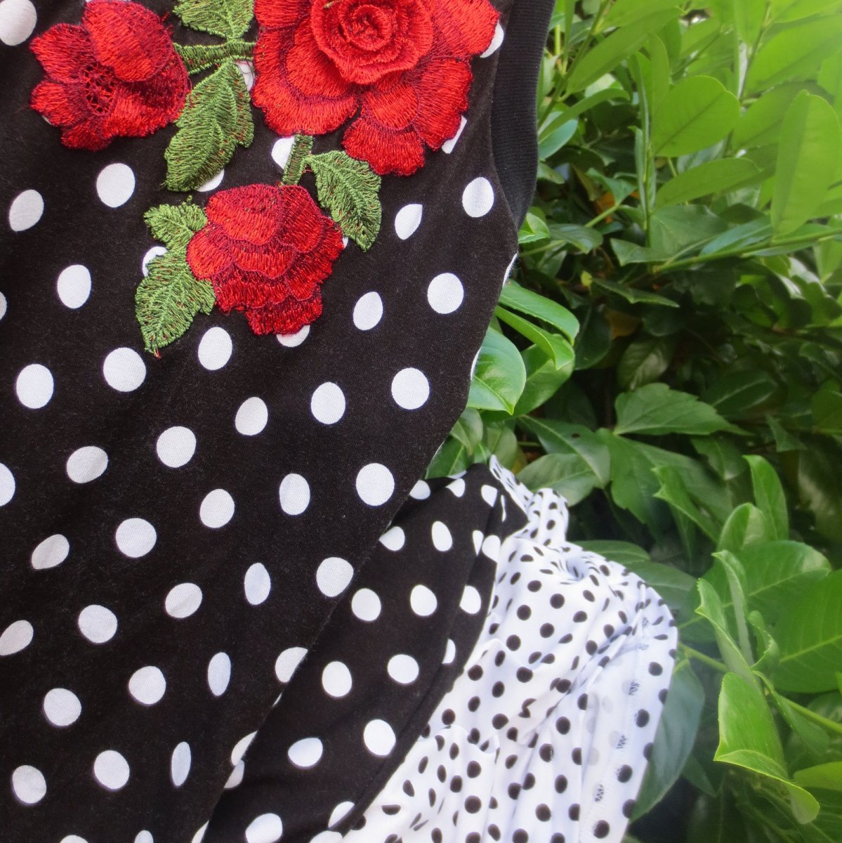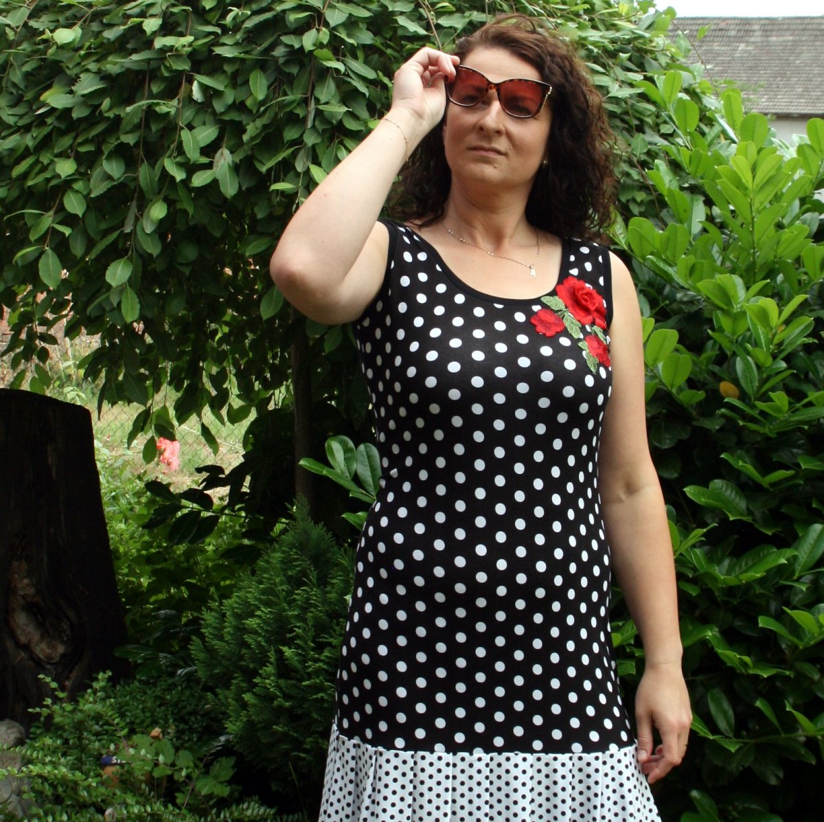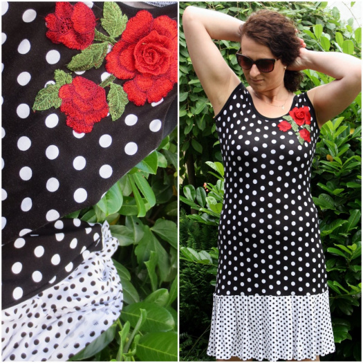 Lehoučký bavlněný úplet - bílé puntíky na černém základu a naopak, opravdu heboučký materiál, který v horkém dni oceníte!