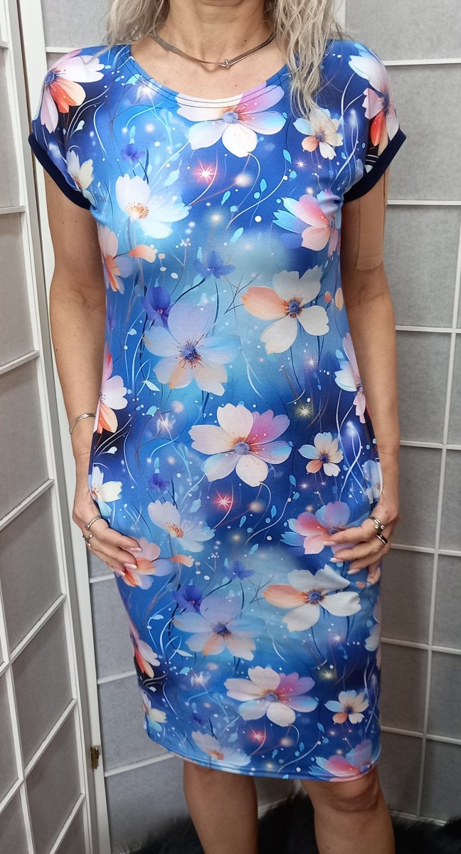 Střih je mírně projmutý, přinechané rukávy, sukně je do úzka, v bočních švech všité kapsy.