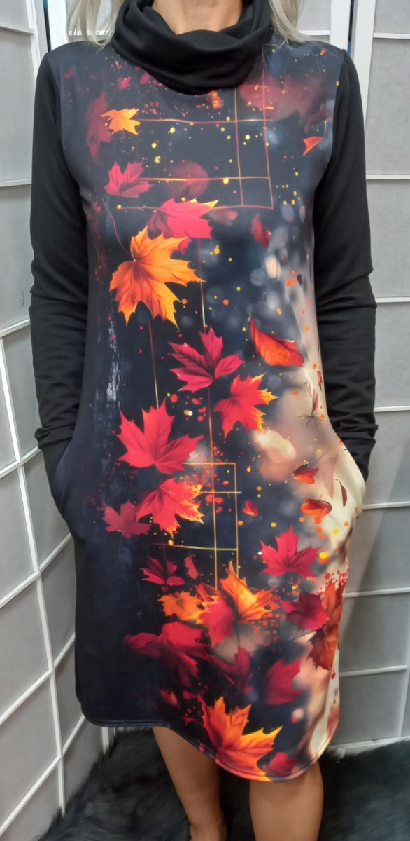Střih je rovný, boky do mírného A, v bočních švech všité kapsy, rolák.