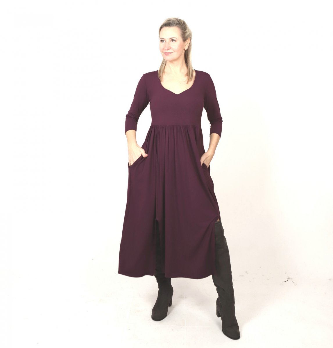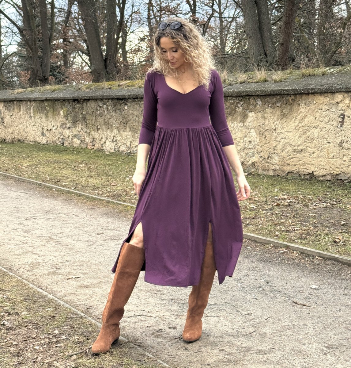 Šaty s rozparky fialové