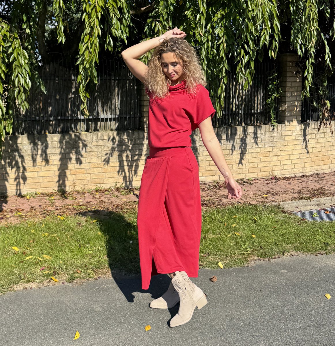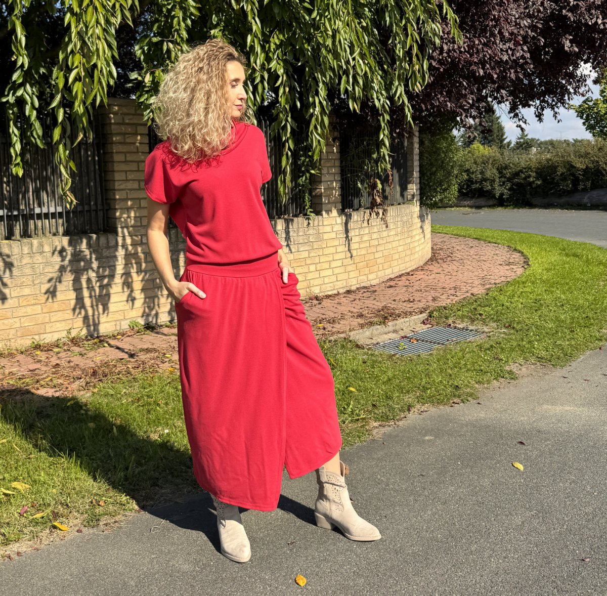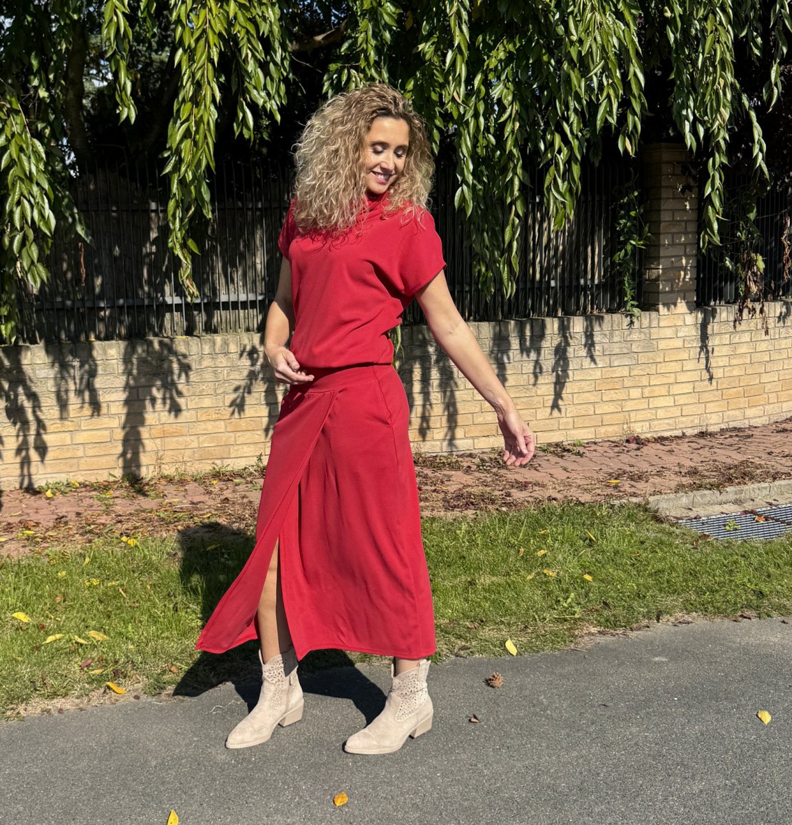 Šaty se zavinovací sukní dlouhé tmavě červené