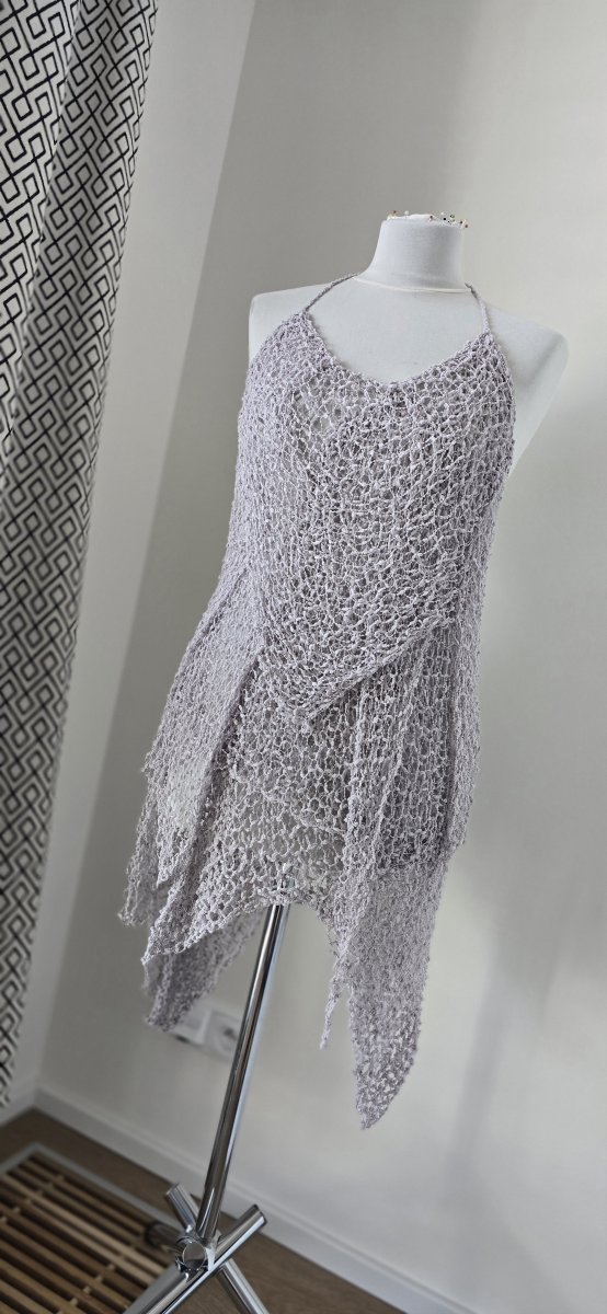 Vstupte do světa jemnosti a elegance s ručně háčkovanými šaty „Šedý sen". Jejich vzdušný, průsvitný vzor připomíná dotek letního větru a šedá barva přináší nádech tajemna a klidu – jako ranní mlha nad mořem.