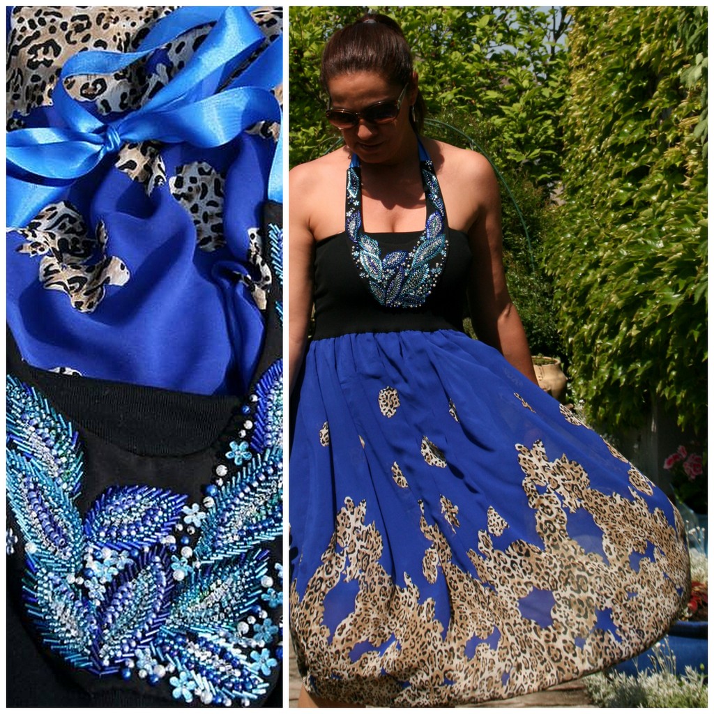 Takové jsou šatičky ušity z luxusního jemného francouzského šifonu v královské modré. Látka je všita do pružného úpletového živůtku černé barvy, který krásně pruží a přizpůsobí se hrudníku! Látka je lehoulinká, takže i přes množství látky použité na modelu vše nádherně splývá!