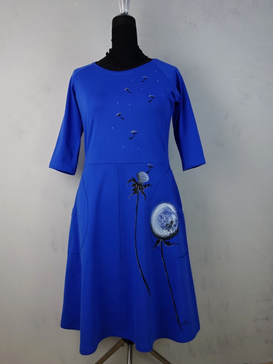 Pohodlné úpletové šaty s ruční malůvkou na předním díle, která tento kousek osvěží a dodá punc originality.