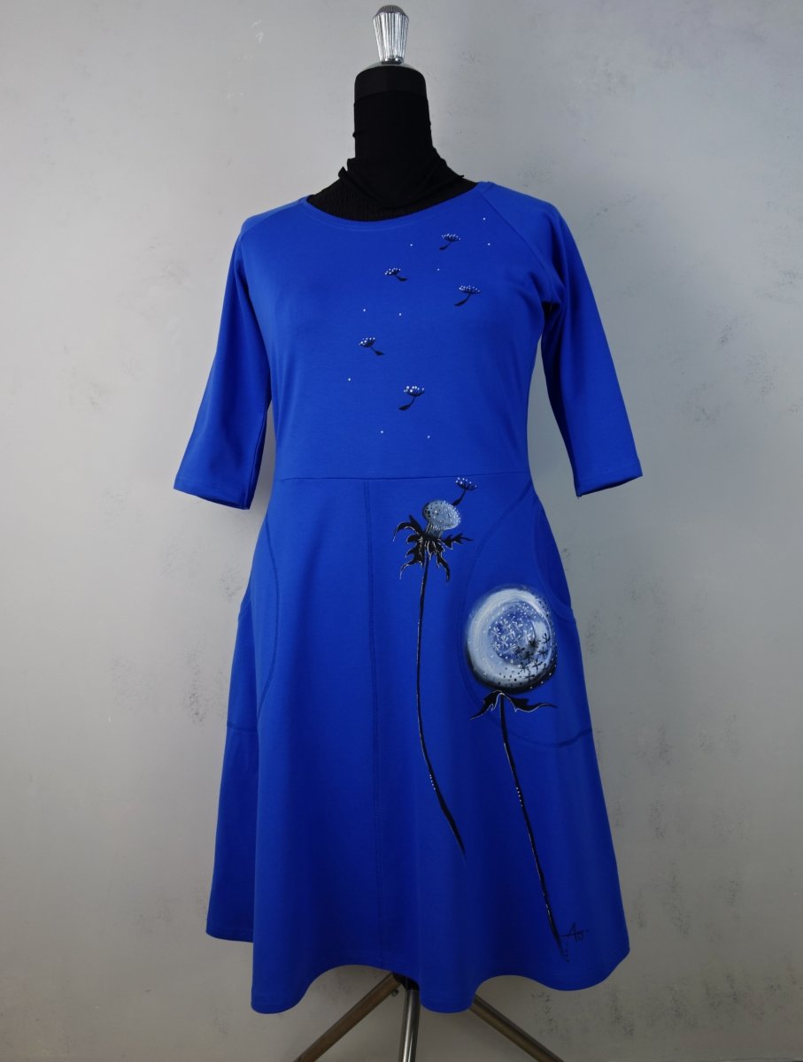 Pohodlné úpletové šaty s ruční malůvkou na předním díle, která tento kousek osvěží a dodá punc originality.