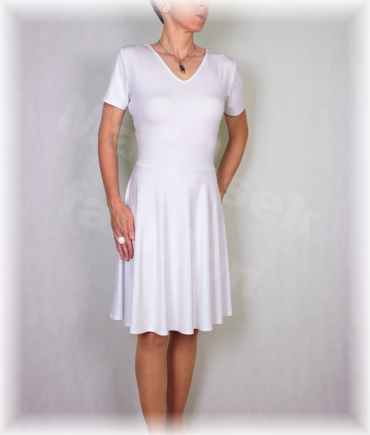 Šaty z viskózového úpletu, přestřižení v pase a půlkolová sukně, která zakryje i širší boky. Materiál je z kvalitního, viskózového úpletu. Šaty jsou nafocený v ilustrační barvě. Vyberte si svou barvu ve fotogalerii a připište do objednávky. Nafoceno na výšce postavy 170cm.