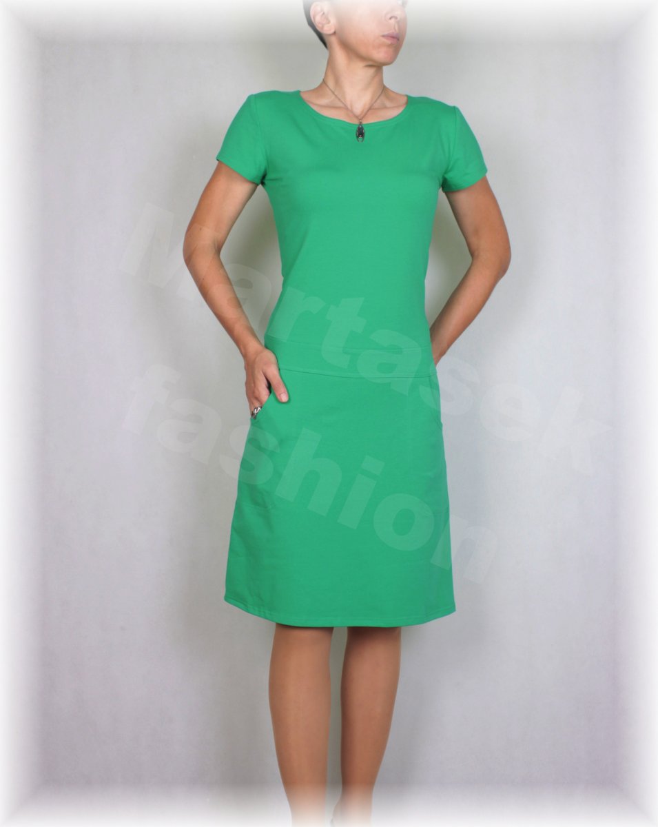 Šaty polopřiléhavého střihu z bavlněného elastického úpletu ve střední gramáži ,na omak velmi příjemné a úžasně pohodlný střih,od boků mírně do A,kapsy.Přestřižení ve sníženém pase.Velký výběr barev od klasiky až po pastelové tóny,vzorník je ve fotogalerii.Nafocené šaty jsou v barvě světle růžové.