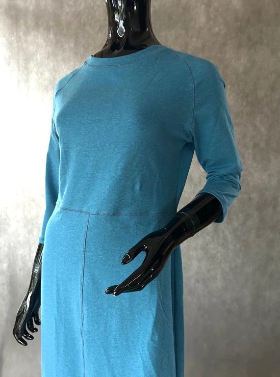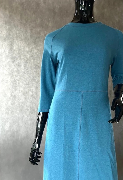 Úpletové šaty s raglánovým rukávem a zvonkovou sukní, krásně obepíná siluetu a sluší nejem štíhlím, ale i plnoštíhlím, právě tím, že vytvoří dojem delší postavy.