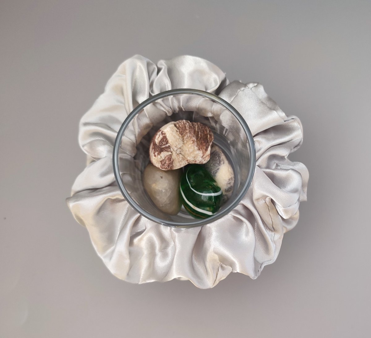Scrunchie gumička je vhodná na každodenní nošení jako krásný doplněk do vlasů, nebo jako náramek na ruku.