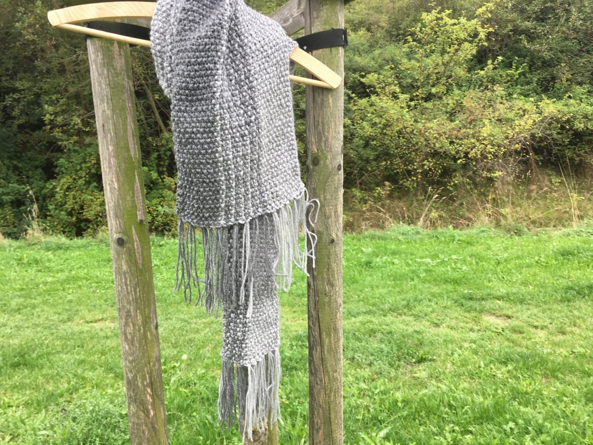 Ve dvou odstínech šedé barvy je upletená šála, kterou na podzim a v zimě užijí dámy i pánové.
