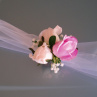 Bílá šerpa s růžemi v tmavě světle a tmavě růžové.