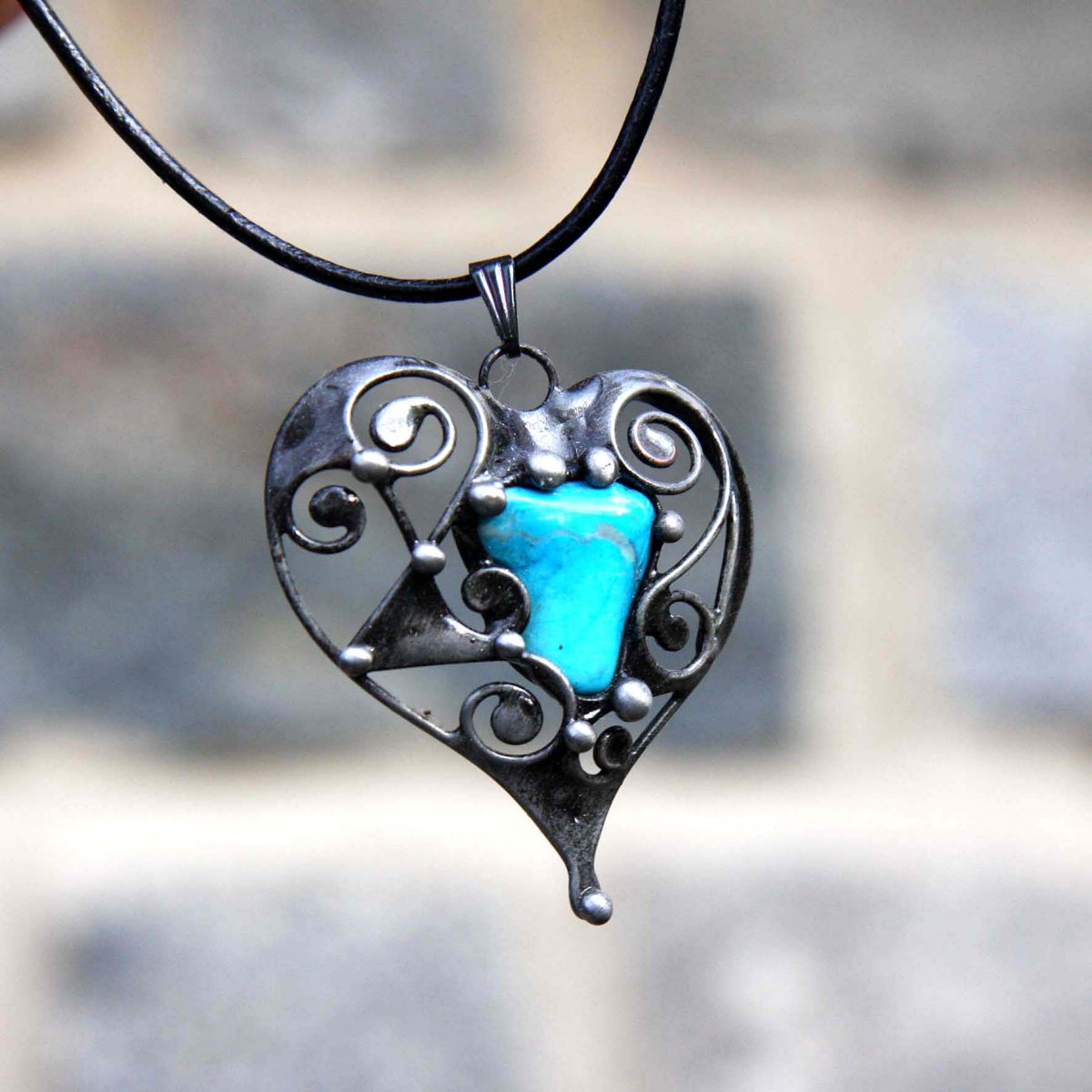 Přívěšek vytvořený tiffany technikou z polodrahokamu Tyrkenit.