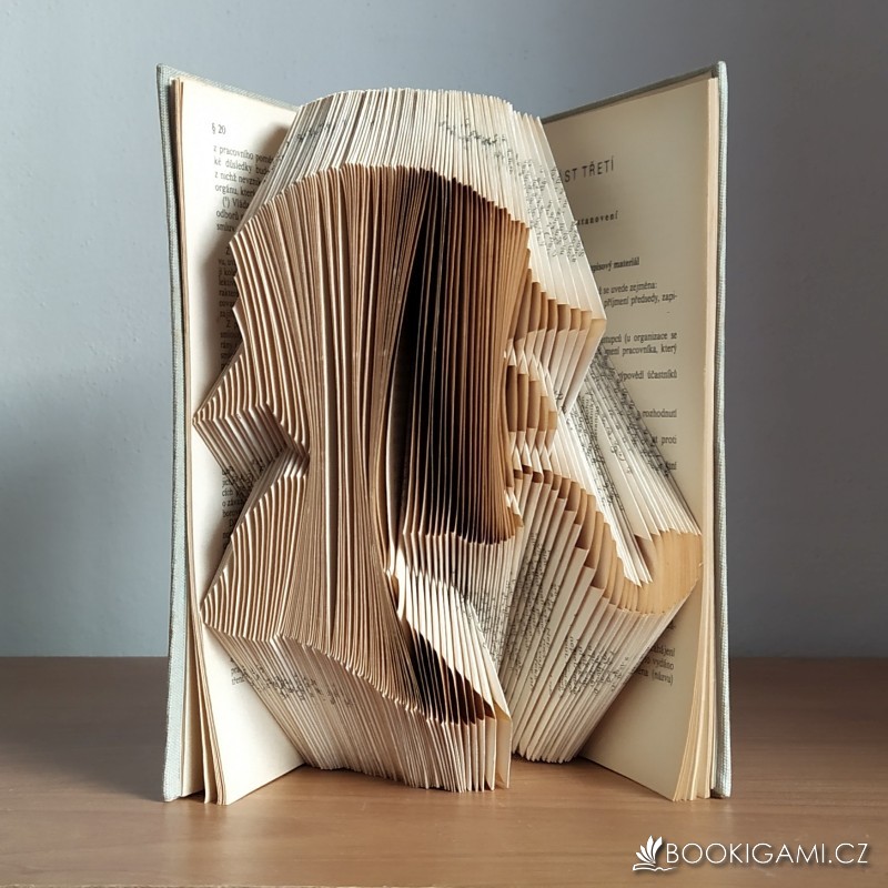 Silueta legendárního detektiva Sherlocka Holmese vyskládaná do staré knihy pomocí metody ohýbání stránek. Žádné stránky nejsou vytržené ani vyřezané, pouze jsou složené tak, aby vytvářely požadovaný tvar. Kniha zůstává po rozložení stran stále čitelnou.