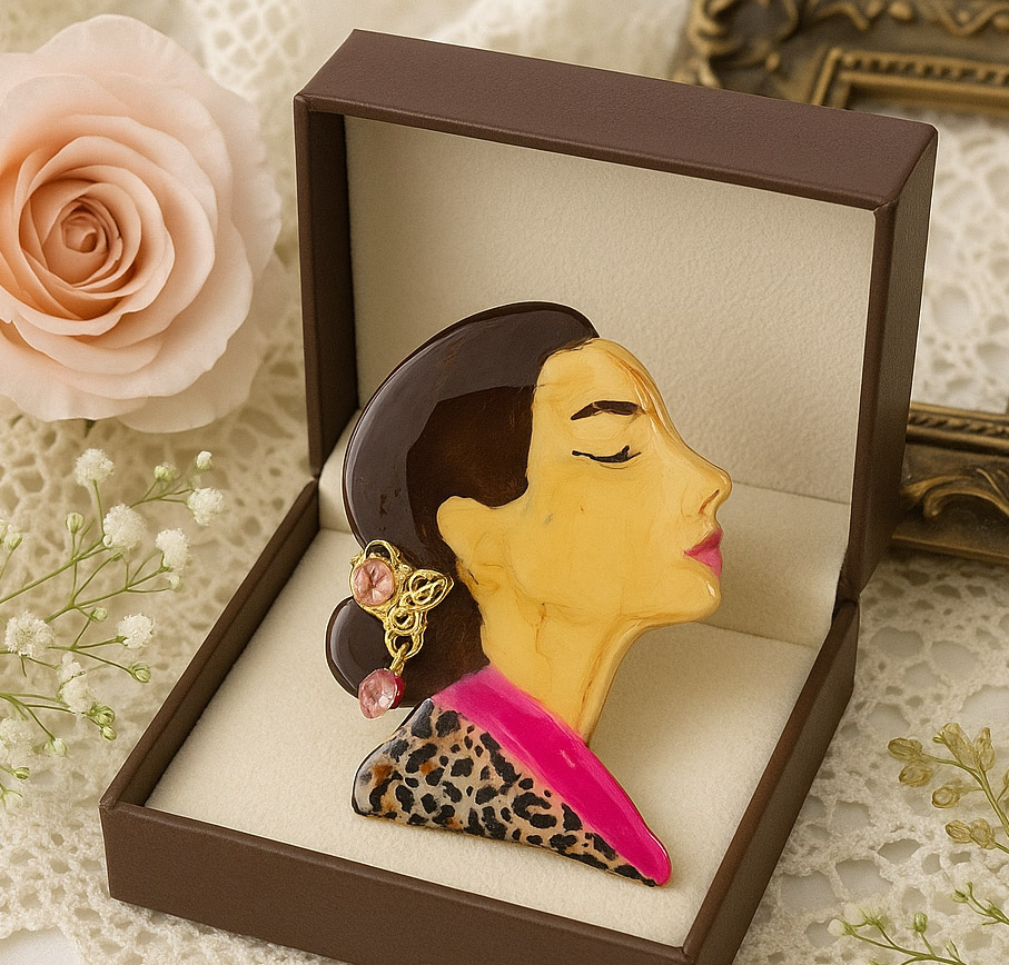 Silhouettes de Luxe – jedinečná kolekce, která spojuje eleganci minulých dekád s jemným luxusem ruční práce. Každá brož z této série je originálem inspirovaným siluetami žen v šatech, kostýmech a večerních róbách.