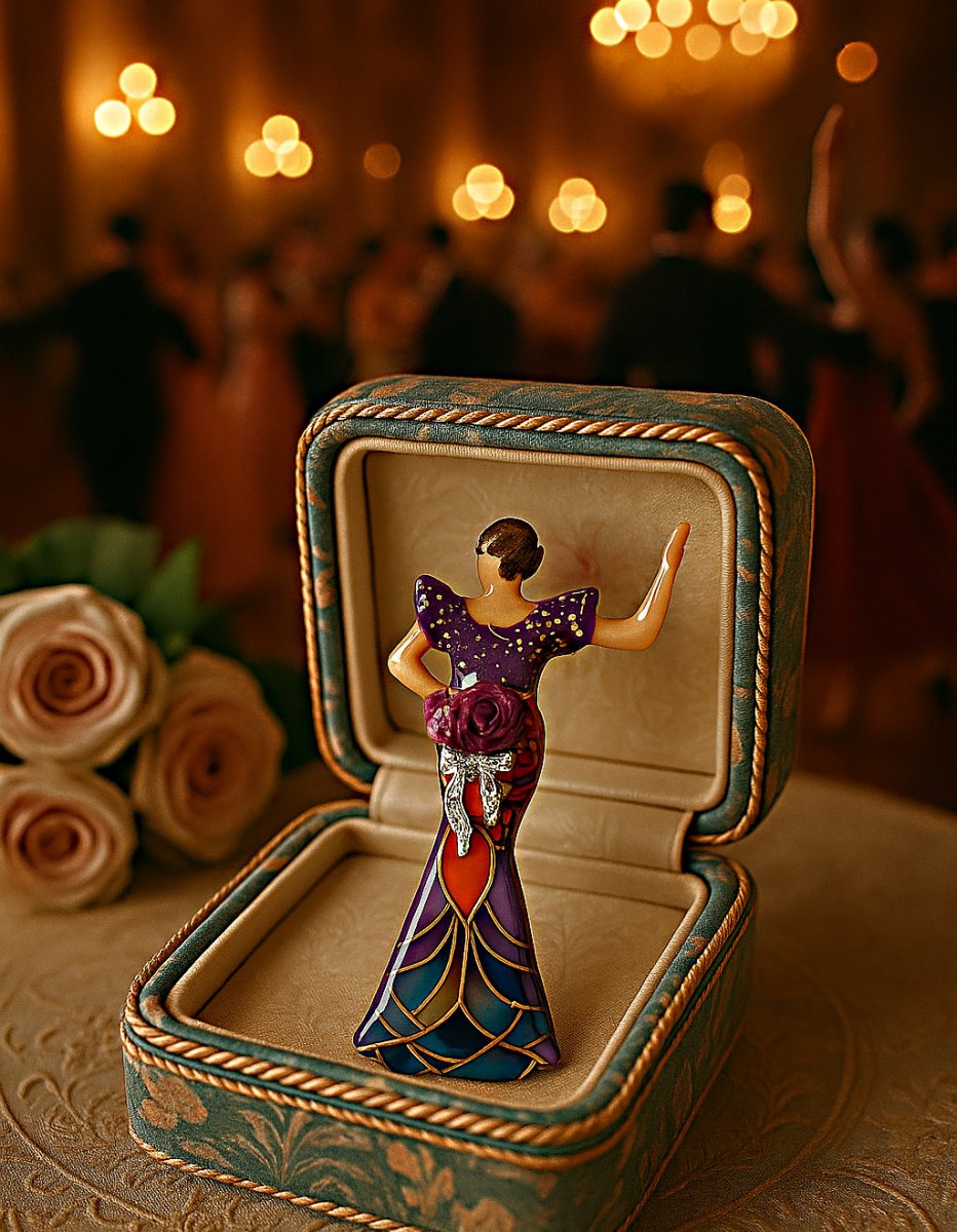 Silhouettes de Luxe – jedinečná kolekce, která spojuje eleganci minulých dekád s jemným luxusem ruční práce. Každá brož z této série je originálem inspirovaným siluetami žen v šatech, kostýmech a večerních róbách.