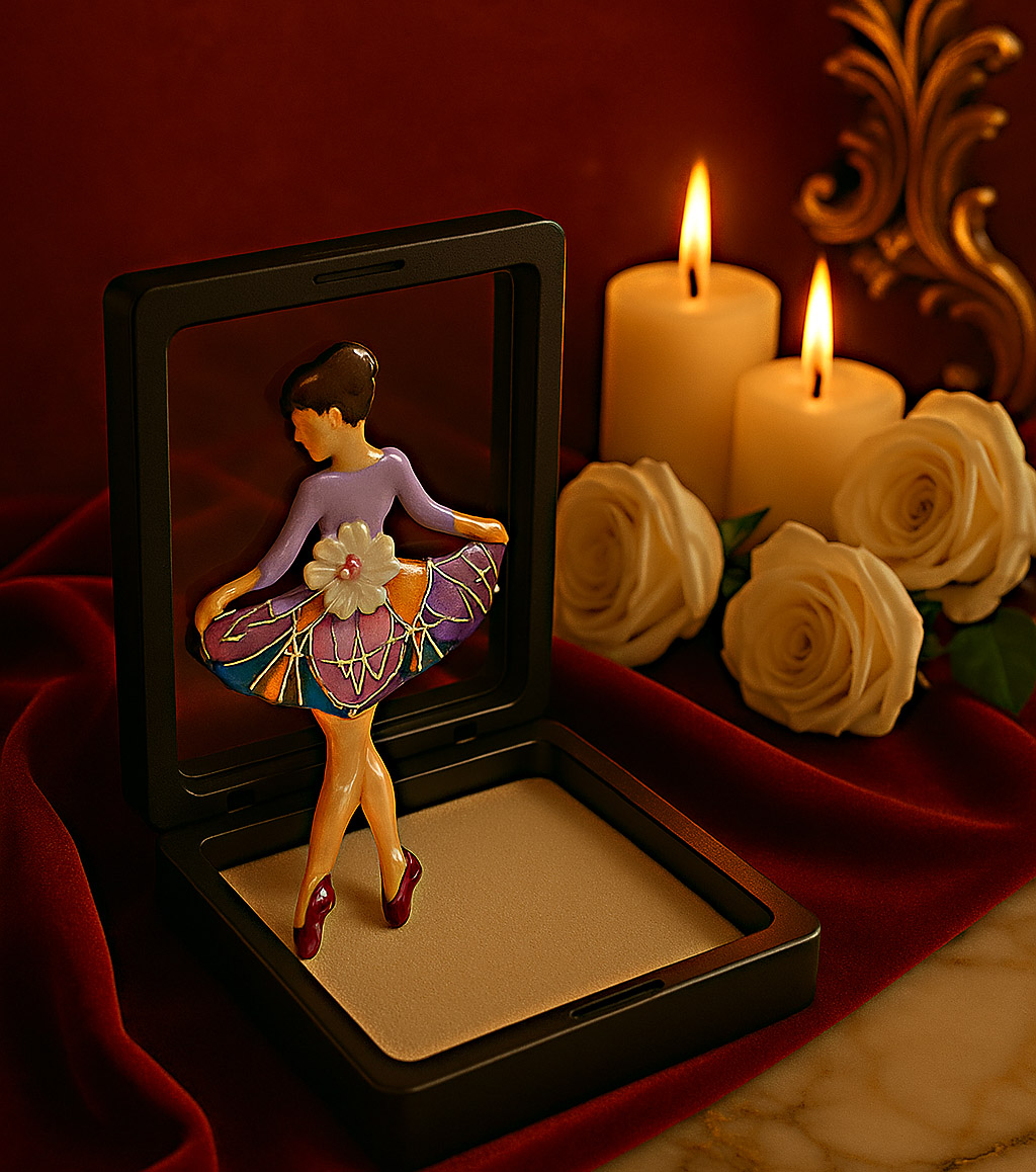 Silhouettes de Luxe – jedinečná kolekce, která spojuje eleganci minulých dekád s jemným luxusem ruční práce. Každá brož z této série je originálem inspirovaným siluetami žen v šatech, kostýmech a večerních róbách.
