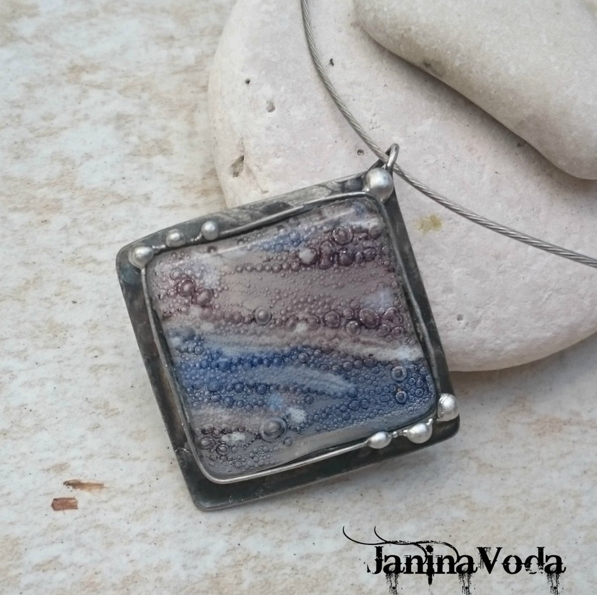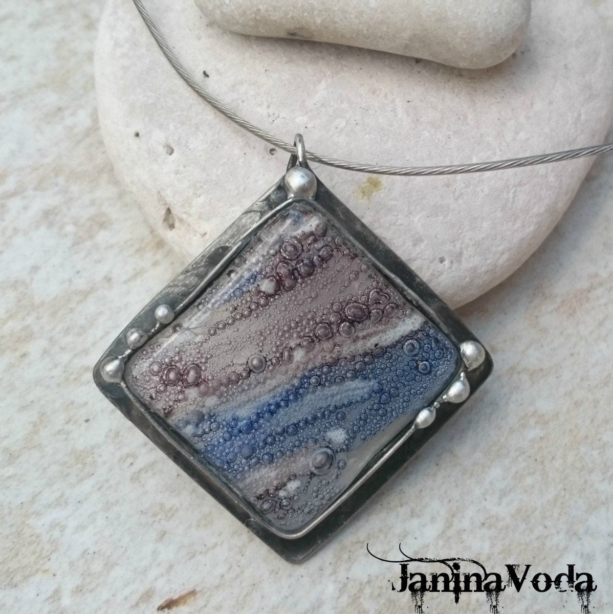 Cínovaný, patinovaný, leštěný náhrdelník ze skla. Náhrdelník je patinovaný, kuličky leštěné a ošetřený antioxidačním přípravkem. Velikost šperku: výška 5cm, šířka cca 4cm,