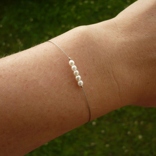 Náramek je vyrobený z drobounkých smetanově béžových českých voskovaných perliček, které jsou umístěné uprostřed bižuterního lanka stříbrné barvy.
