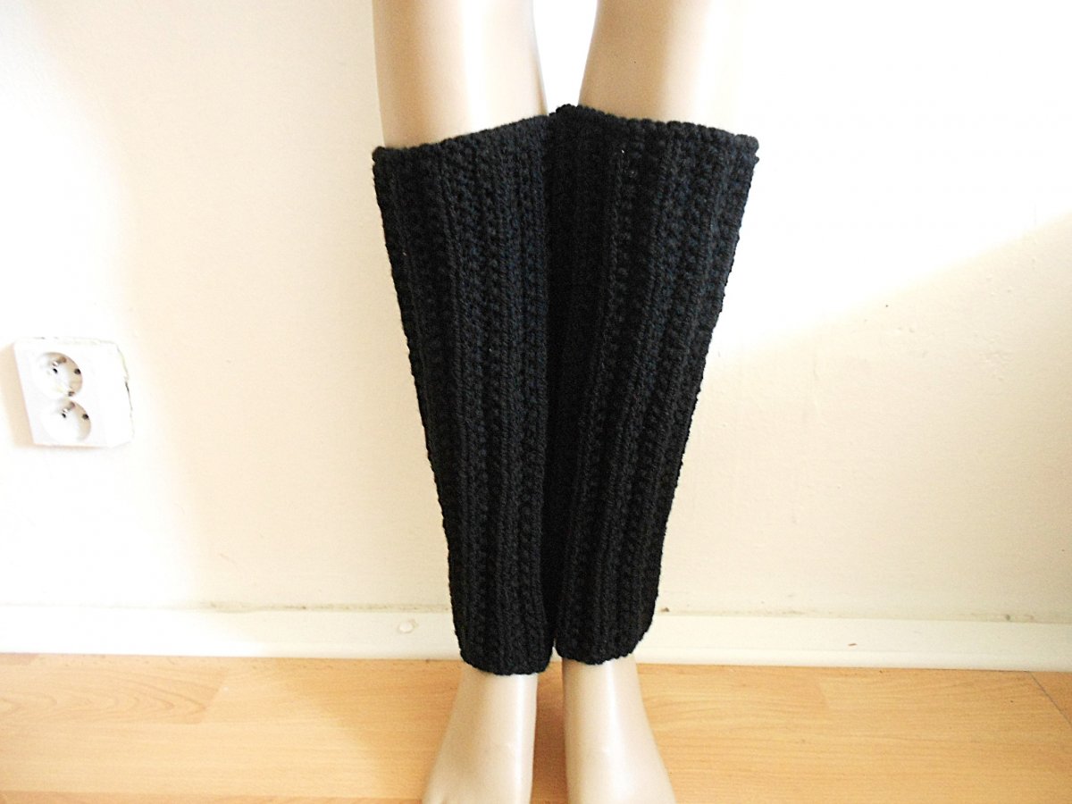 Teplé, ručně pletené, černé návleky na nohy, velmi pružné. Velikost uni, délka 32cm, širší, vhodné na širší nohy nebo na kalhoty. Doporučuji ruční praní a sušit volně položené.