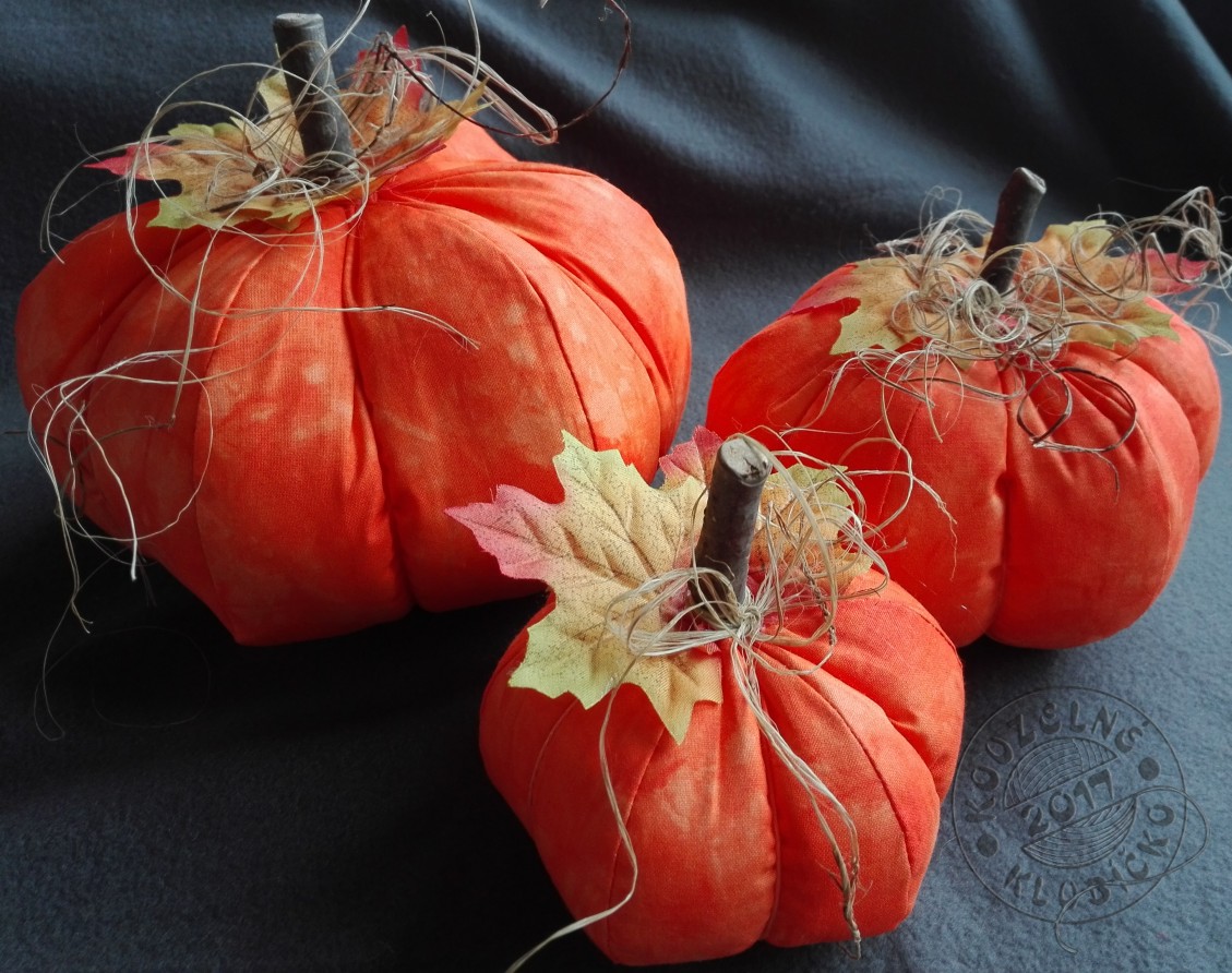 Dýně šitá z bavlněné látky (100% bavlna) v jasně oranžové barvě, plněná dutým vláknem (polyesterové kuličky 100% polyester), doplněná klacíkem, dekoračním polyesterovým listem v podzimních barvách a přírodním lýkem.