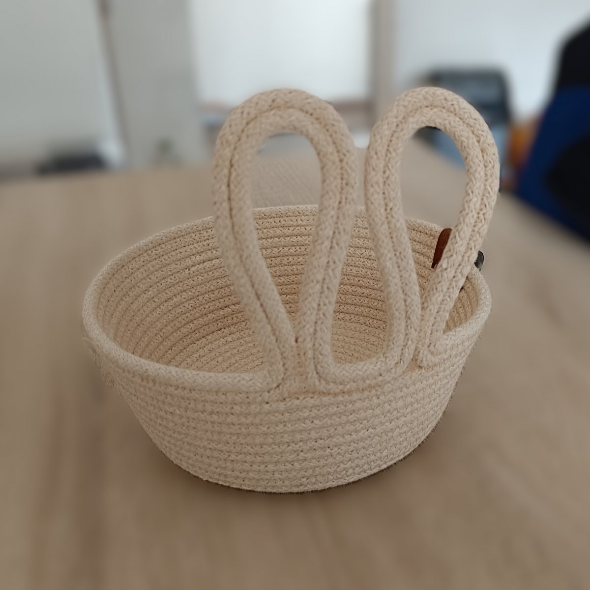 Ručně šitý košík je tvořen z pevných šňůr, které mu dodávají vysokou pevnost a schopnost držet tvar i při častém používání. Každý kus je originál, protože je šitý ručně s důrazem na detail a kvalitu zpracování.