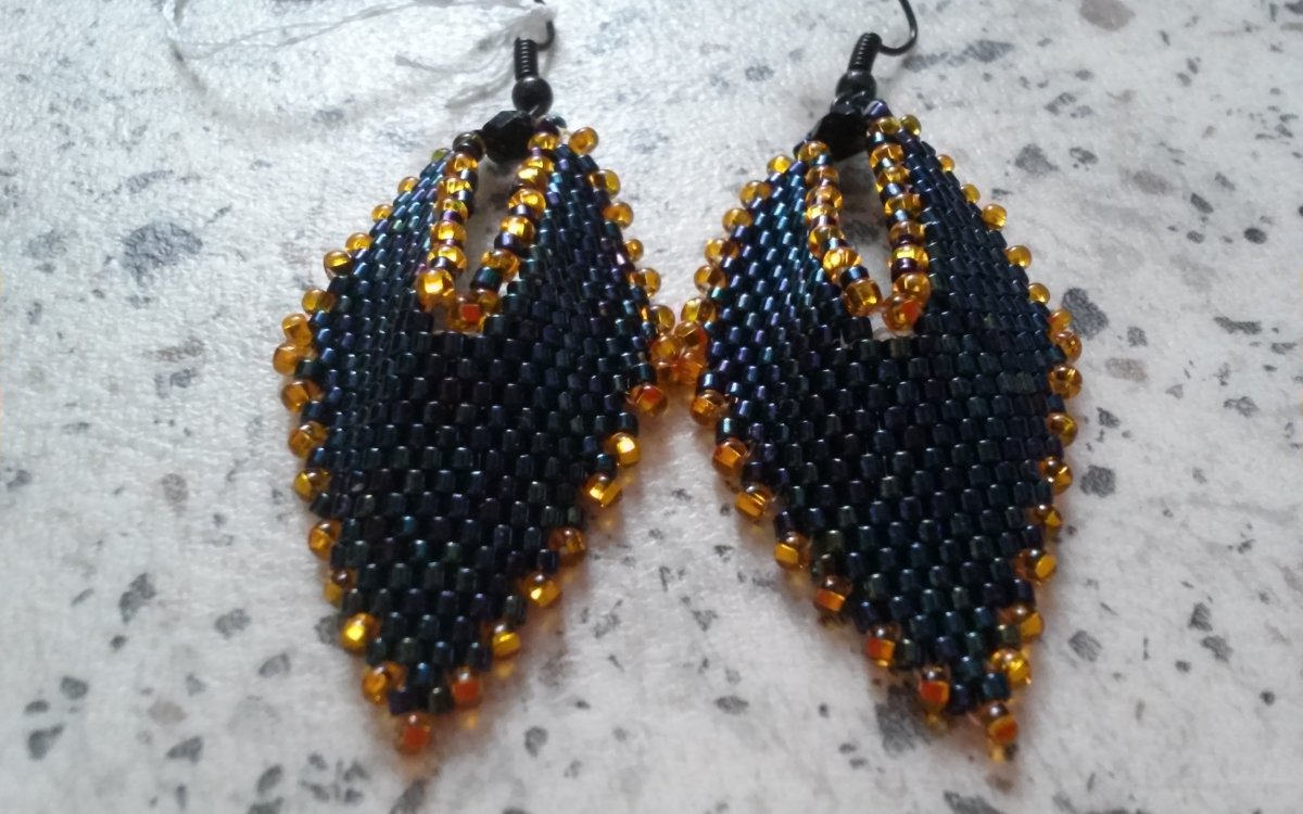 Šité černo-zlaté naušnice z kvalitních korálků TOHO ,dlouhé 5cm.Háček do ucha z bižuterie.