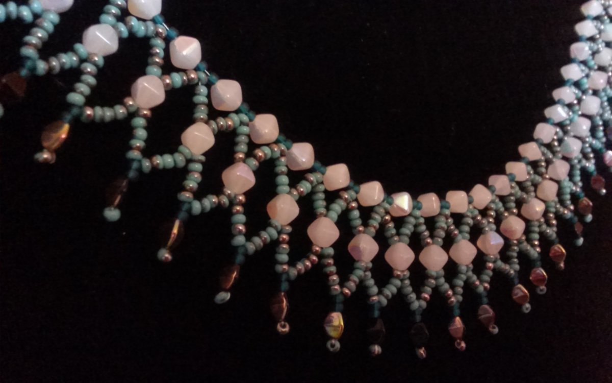Šitý náhrdelník o delce 42 cm,z rokajlových korálků.Magnetické zapínání...