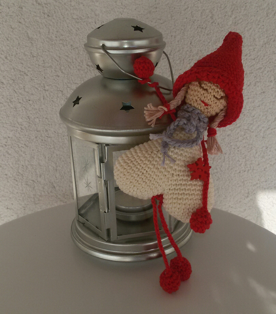 Jsem háčkovaný ze 100% bavlny, ozdobený dřevěným knoflíkem a rolničkou. Vyrostl jsem do výšky 24 cm (v sedě 17cm), vyplněn jsem dutým vláknem a vánoční náladou. Můžeš si mne i umýt do 40°C.
