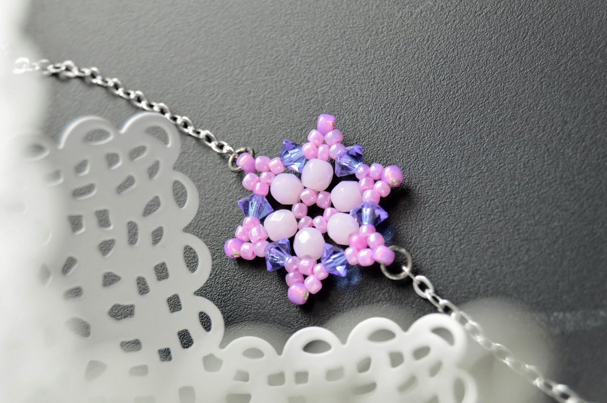 Ručně šitá hvězdička je tvořená převážně z broušených korálků z města Jablonce nad Nisou a bižuterních komponentů. Za menší poplatek mohu komponenty vyměnit za ty z chirurgické oceli (prosím ale o zprávu předem nebo do objednávky). Na přání vyrobím za stejnou cenu v jiných barevných variantách.