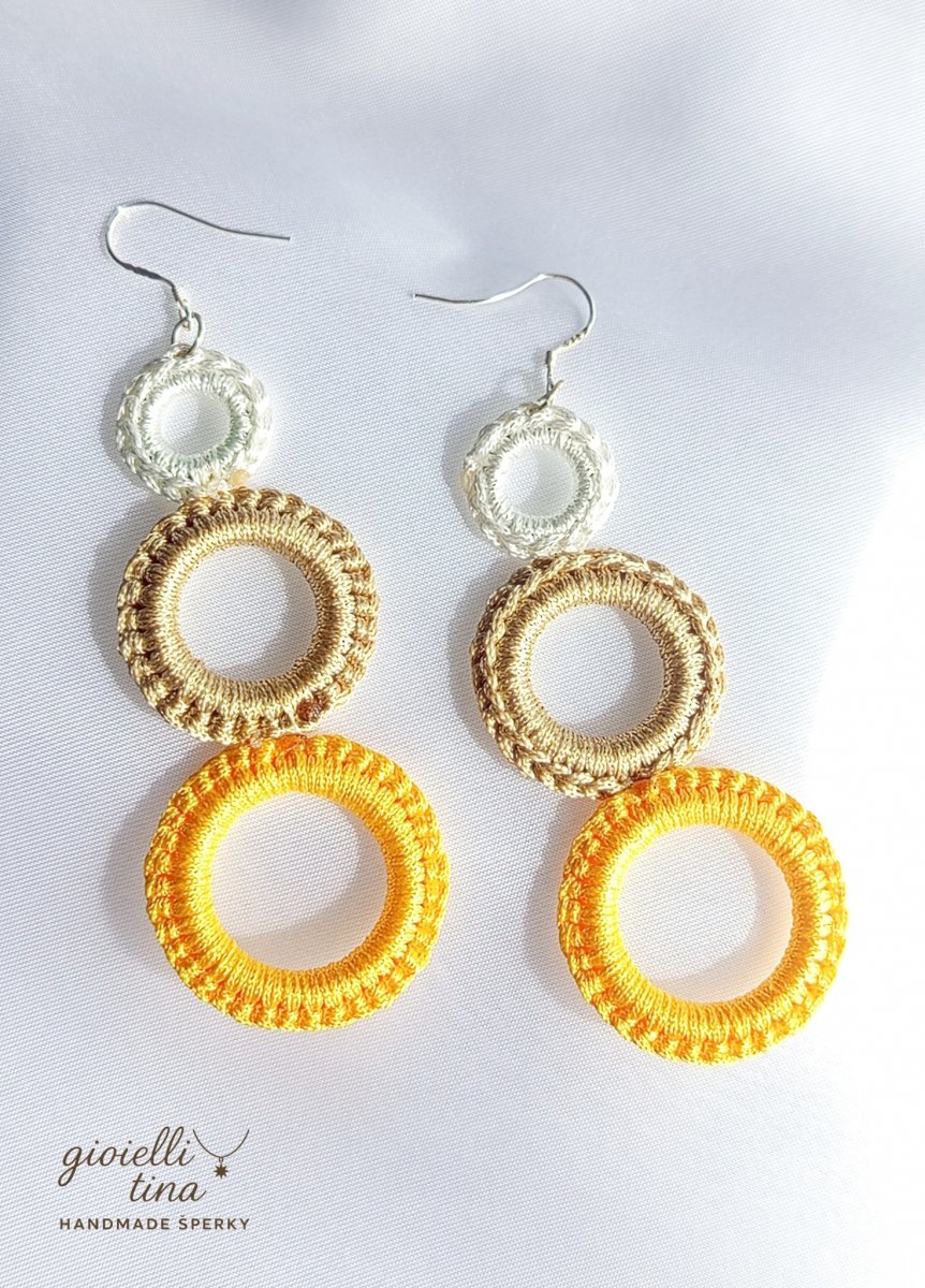 Tyto jedinečné náušnice značky gioielli tina jsou stvořené pro ženy, které milují minimalismus, ale zároveň se nebojí zaujmout. Tři ručně háčkované kruhy voskovými šňůrkami tvoří elegantní a moderní kaskádu, která dokonale podtrhne váš osobitý styl.