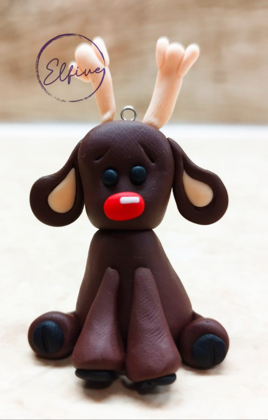 Vánoční ozdoba s motivem sobíka. Každý sobík má poutko na zavěšení.