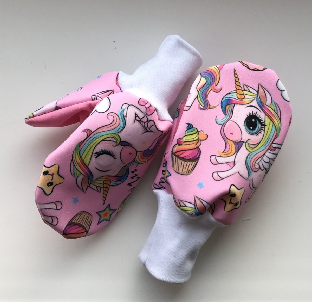 Zimní palčáky s dětským růžovým,duhovým motivem...pro děti-spíš holčičky ve věku 1,2,3,4,5,6 roků
