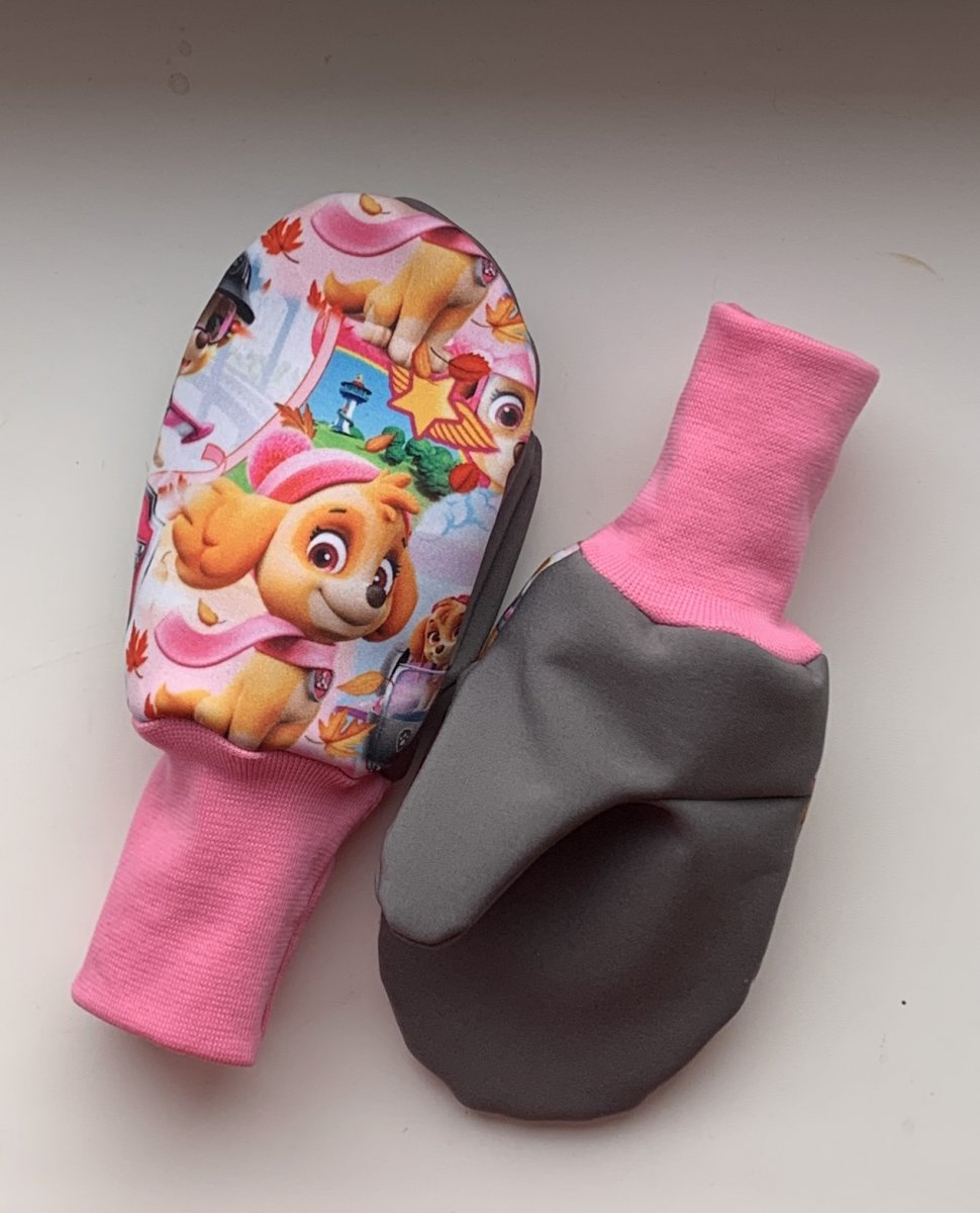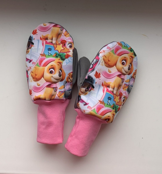 Softshellové palčáky,částečně podšité s potiskem růžových holčičích tlapek,,,pro děti ve věku,1-2,,,3-4,,,5-6..( velikost upřesněte v poznámce) ....s 6 cm rantlem..