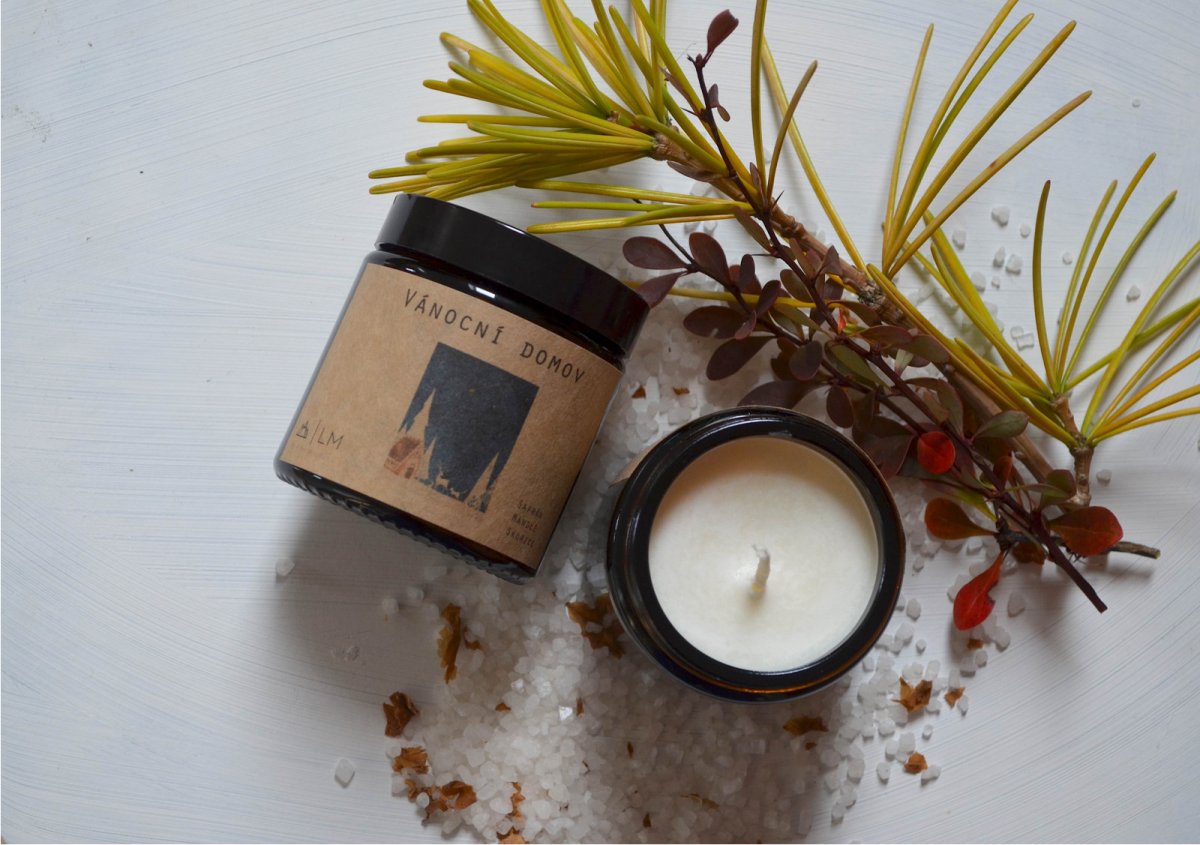Sójová svíčka vyrobená z přírodního vosku ze sójových bobů.