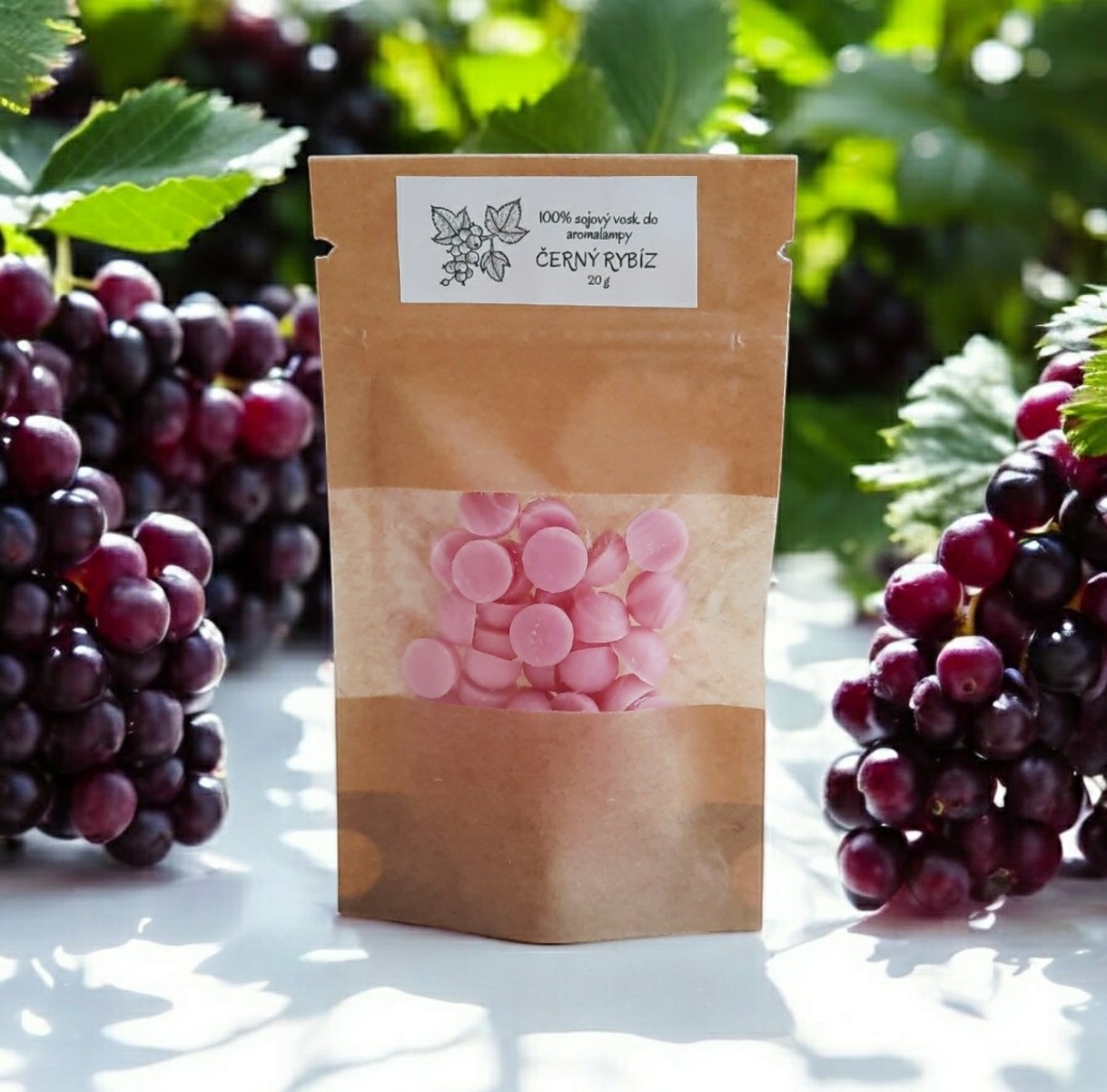 Vonná srdíčka a pecičky do aromalampy s ovocnou vůní černého rybízu v praktickem znovuuzavíratelném sáčku.