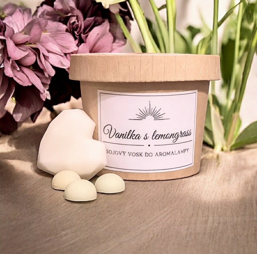 Vonné pecičky a srdíčka do aromalampy s vůní vanilky (bílé) a lemongrass (zelenkavé), které lze použít každou zvlášť nebo nakombinovat společně.