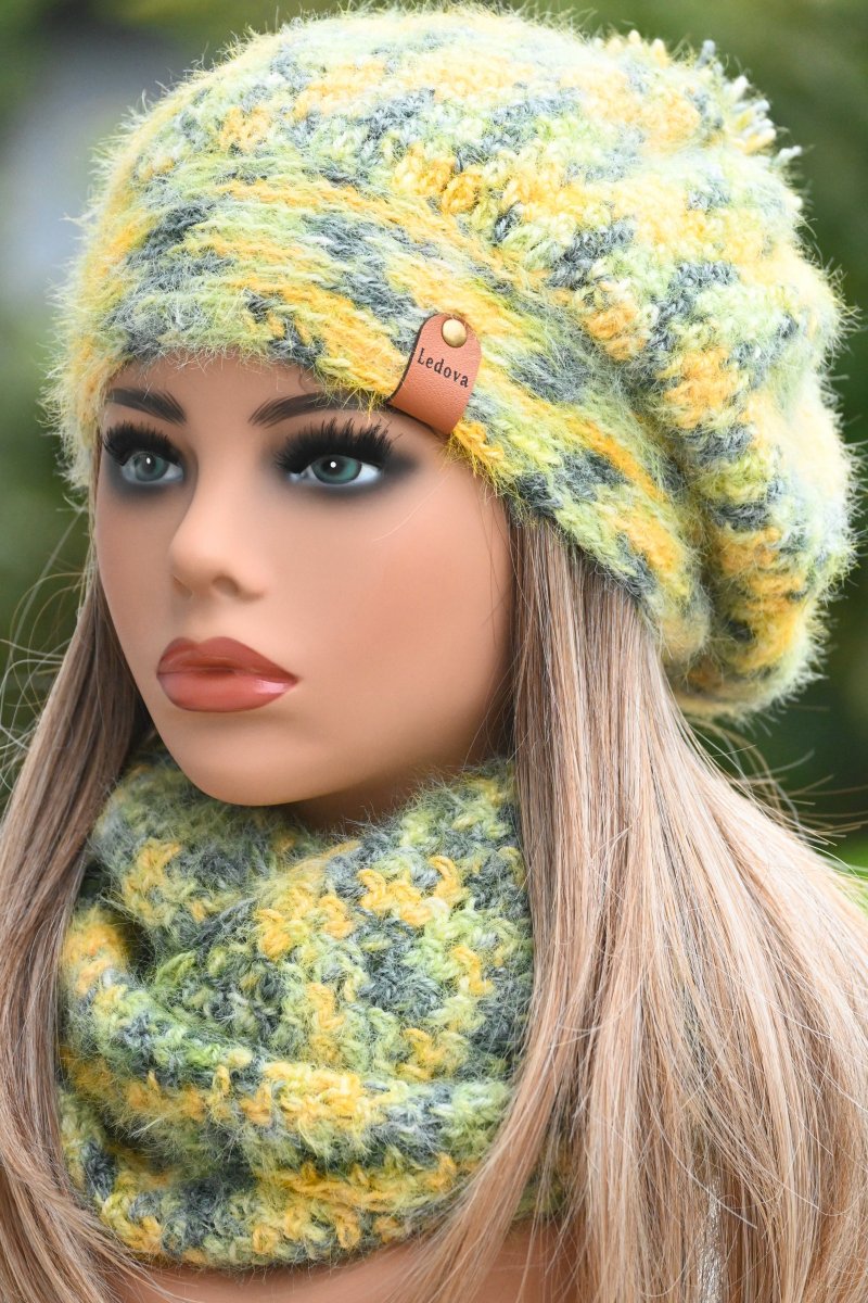 Háčkovaná souprava čepice s nákrčníkem z chlupatkové příze – hřejivý set pro zimní dny