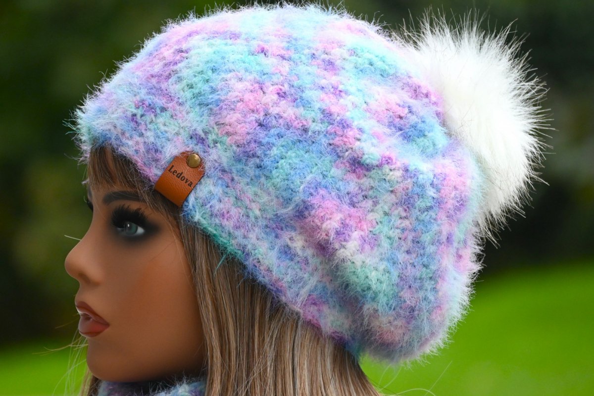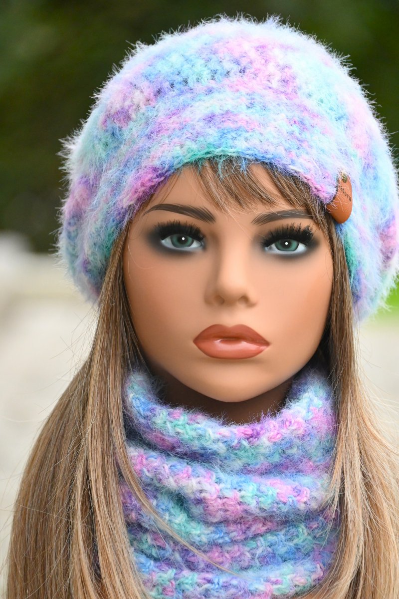Háčkovaná souprava čepice s nákrčníkem z chlupatkové příze – hřejivý set pro zimní dny