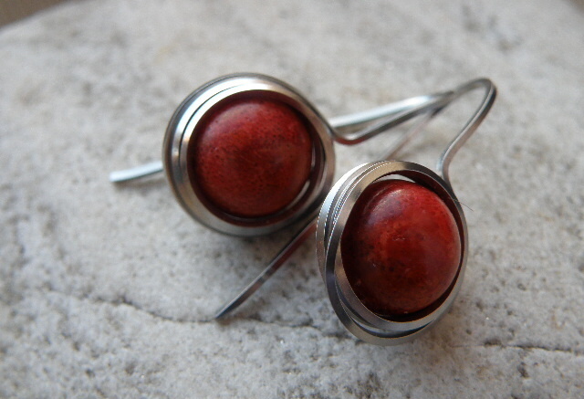 -----------------------------Naušnice z chirurgické oceli, zdobí je krásné červené korály průměr je 10mm . Jsou malé, jemné, lehoučké, roztomilé.........použit profilový drát.Plastové zarážky proti ztracení.