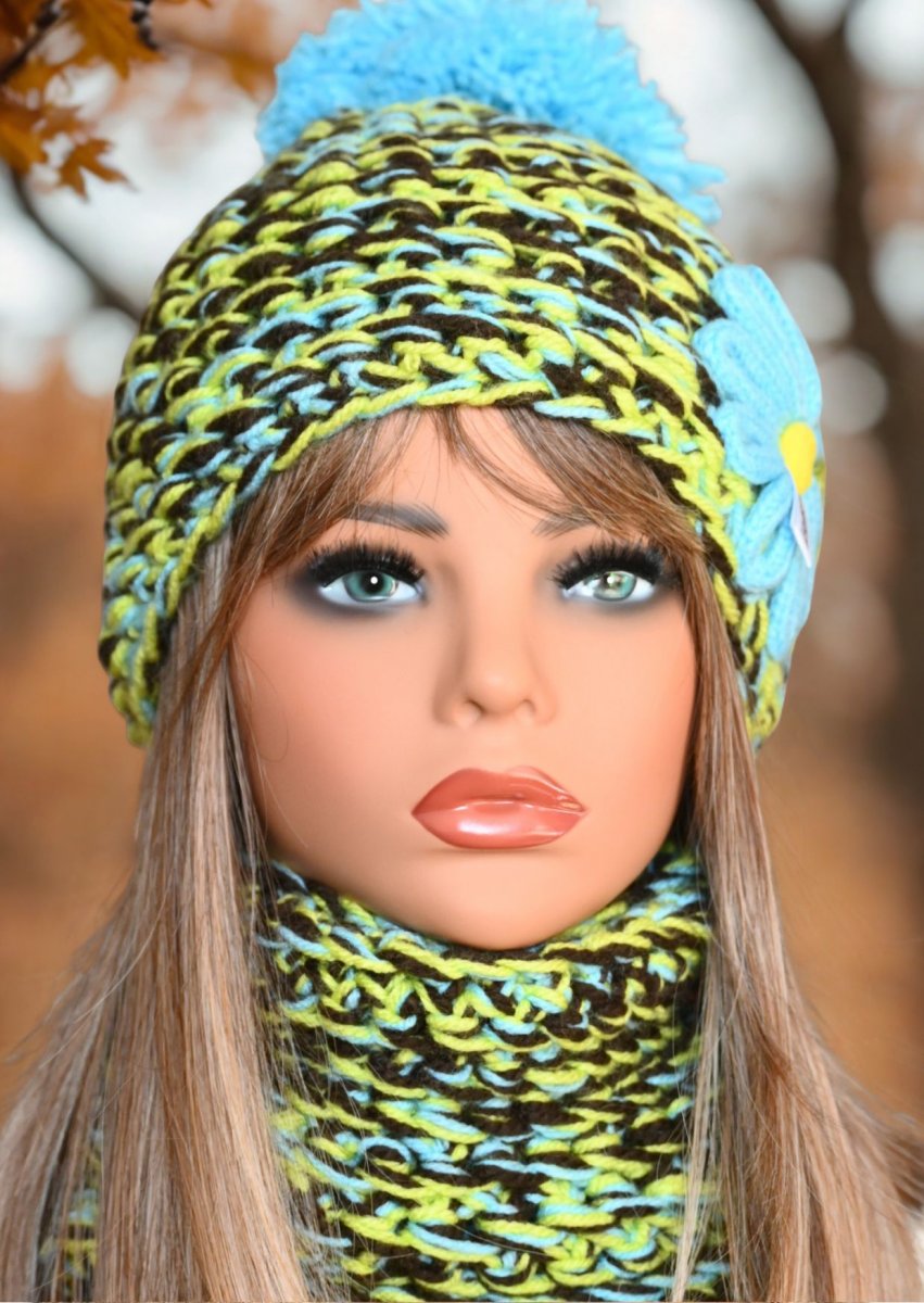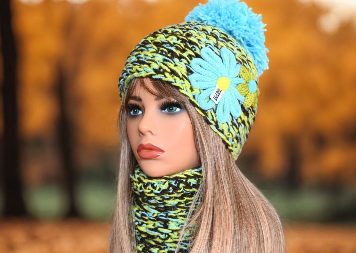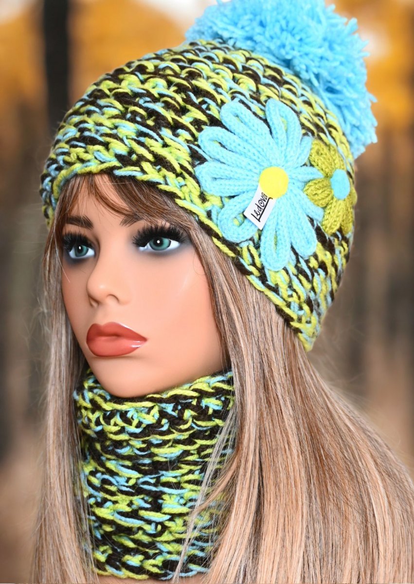 Dámská zimní souprava z akrylové příze s kytičkami