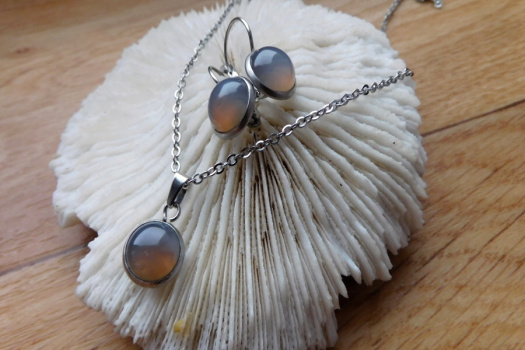 Lůžko vyrobené z protialergické nerezové oceli , nevyvolává alergie, ani nečerná a nemění barvu, doplněné pravými polodrahokamy ,chalcedon