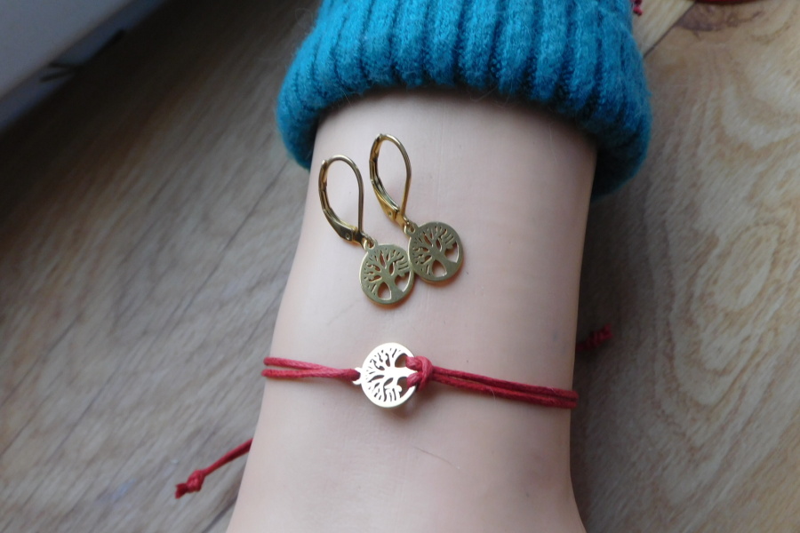 Náramek + naušničky - nerezový Strom života nečerná, nerezaví....stále stejny, pozlacená varianta