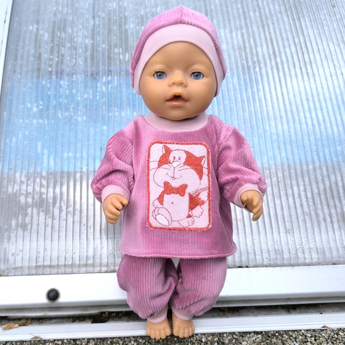 Soupravička pro panenku BABY BORN a podobné panenky. Tepláky, mikina a čepička. Velikost panenky 40 - 43 cm.
