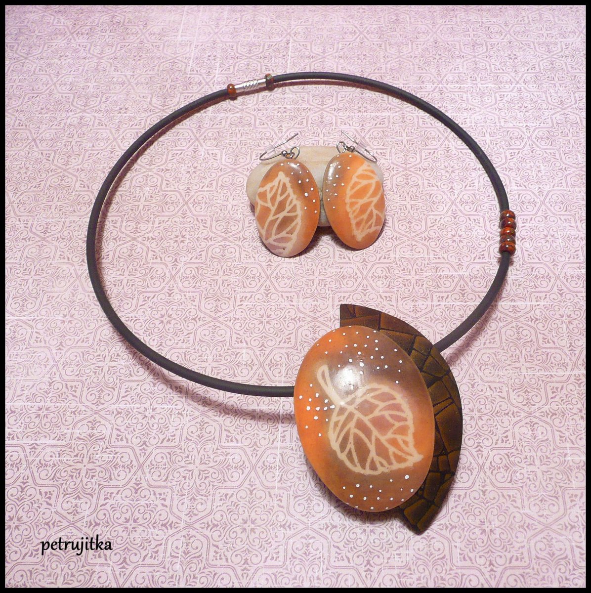 Originální souprava náhrdelníku a náušnic z polymerové hmoty. Barva je